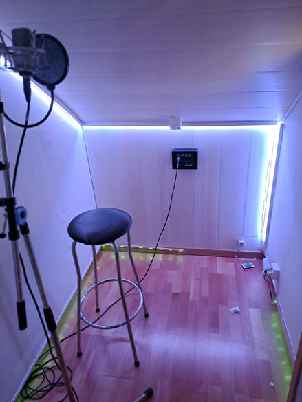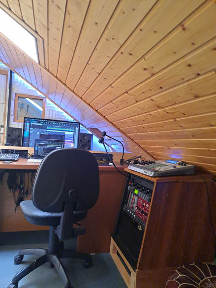 Notre studio est composé d'une cabine d'enregistrement traitée acoustiquement, permettant de capter une grande majorité d'instruments et de sources sonores de manière professionnelle. Notre régie combine du matériel analogique et numérique et permet d'avoir un contact visuel entre l'artiste et l'ingénieur du son grâce à une fenêtre dans la cabine d'enregistrement. La régie est partagée avec un espace confortable dans lequel vous pourrez vous détendre lorsque vous le souhaiterez.